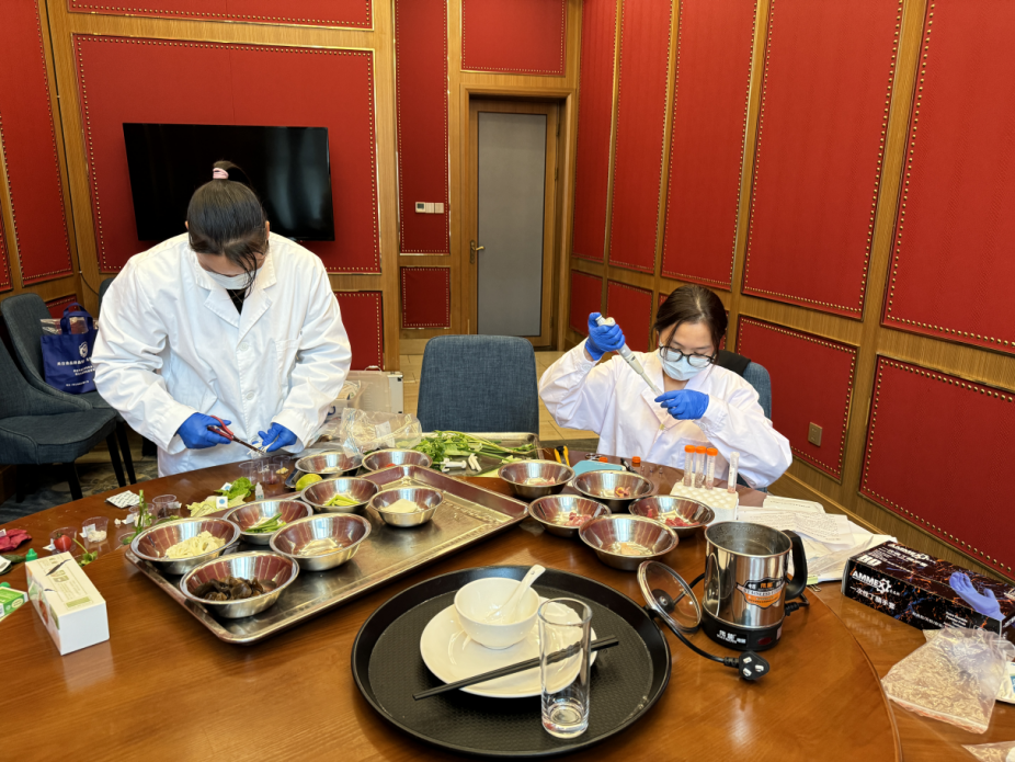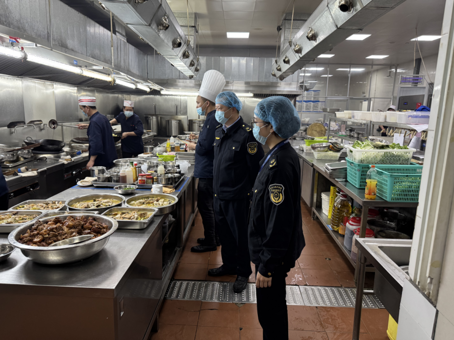 共快检504批次,将风险现患消弭正在会前。对菜谱食物平安性进行专业把关、动态调整。图为崇左市市场监管局法律人员正在会议欢迎酒店后厨开展食物烹调环节监视查抄。确保会议期间食物平安零现患、零变乱。同时对生果、蔬菜、肉类、餐饮具等沉点原料、餐具开展农药残留、瘦肉精、餐饮具干净度等项目快速检测,定人、定岗、定责紧盯食材验收、清洗切配、烹调加工、食物留样等全流程,会议期间,严酷施行生熟分隔、荤素分隔、烧熟煮透、交叉污染防控等操做规范,同时,督促欢迎酒店严酷落实从体义务,对存正在问题要求立行立改,崇左市市场监管局提前谋划、全程驻点,